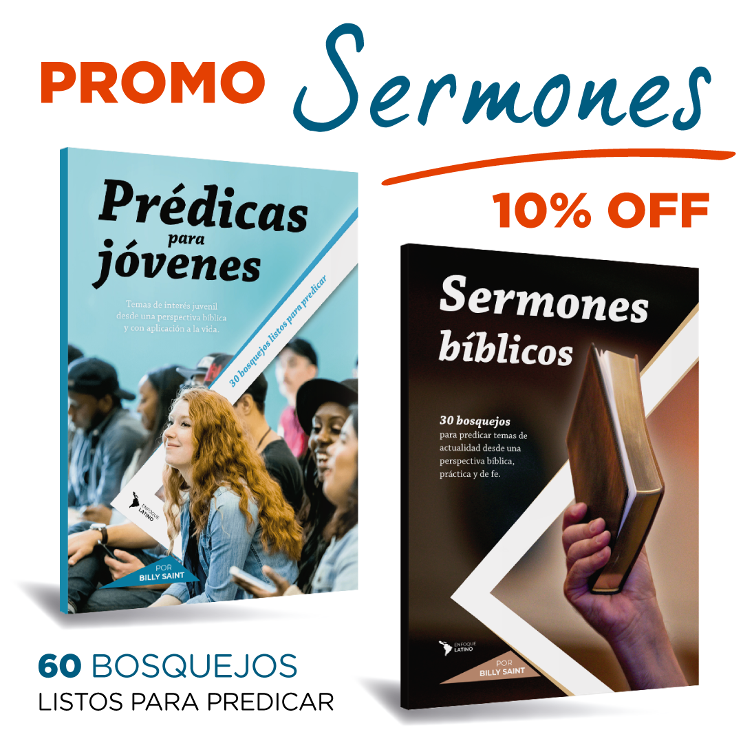 La Promo Sermones incluye 2 libros con un total de 60 bosquejos listos para predicar, sobre diferentes temas de actualidad, desarrollados desde una perspectiva bíblica y con un enfoque práctico y de fe. Lleva los dos con un 10% de descuento.